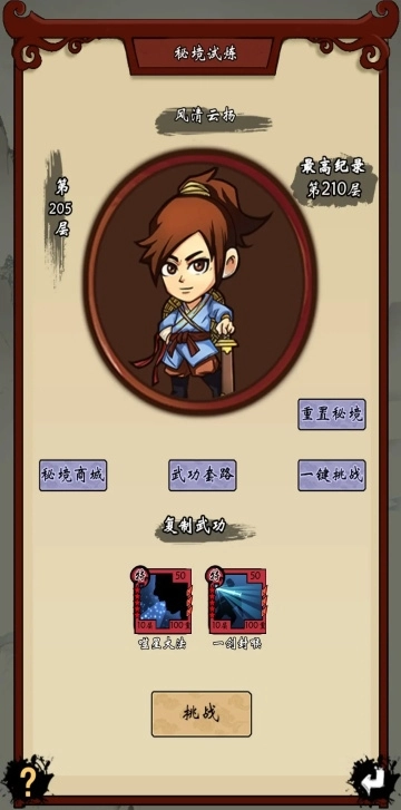 这里有个小技巧:你可以提前用元宝挑战那些主线还没推到的关卡宗师,这样就能提前拿到他们的宗师武功。大家通常会等实力到了一定程度后,专门来挑战最后几个关卡的神级武功——要是能拿到手,那可就等于拥有了天下! 可能有人会问:为什么主线关卡打不过,却能在这里提前挑战拿武功呢?秘密就藏在元宝挑战的机制里:每次用元宝挑战,都会临时增加10%的四维属性,用的次数越多,临时提升的实力就越强,自然就有机会提前攻克难关了。 不过要提醒几点:第一,每个宗师的挑战次数是单独算的,而且每天12点会重置,这点要记好;第二,先手值一定要够,不然可能得接近80万战力才能打;新区的话,推荐存档到2万以上再去尝试,毕竟宗师是有护盾的,太早上手容易吃亏。