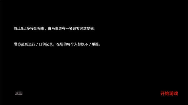 案情记录:今晚九点多接到报案,称桌游室内有人突然暴毙,初步判定系中毒身亡,急救车抵达时已无力回天,在场人员均有作案嫌疑,现已立案侦查,我赶到现场时,相关人员的口供已录制完毕。
