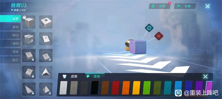 ①改色:改色有两种方法,一是购买喷漆,能改变【萌新】核心的颜色和基础风格模块的颜色,不过这种方式需要用金币购买喷漆;要是我们没有足够的金币来买喷漆,也可以选择单独给基础块改色,这样能达到喷漆的部分效果,而且这个方法是免费的。
