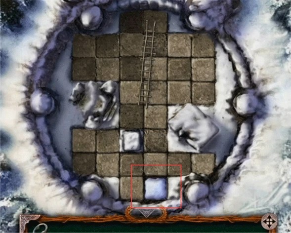 点击右下角雪堆右边的方块,把雪堆往左边移动1格,然后从上方将雪铲入坑内。