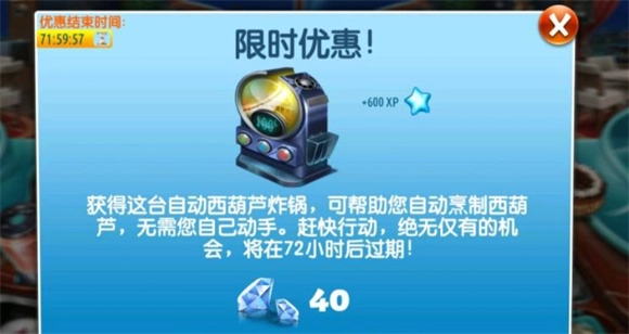 天堂岛海鲜餐厅的自动烹饪设备里,有一台自动西葫芦炸锅,它能自动烹制西葫芦,这台机器需要通关到第29关才能解锁使用。