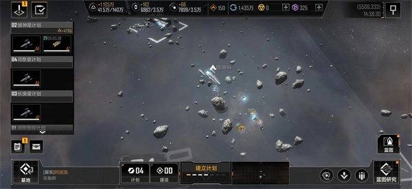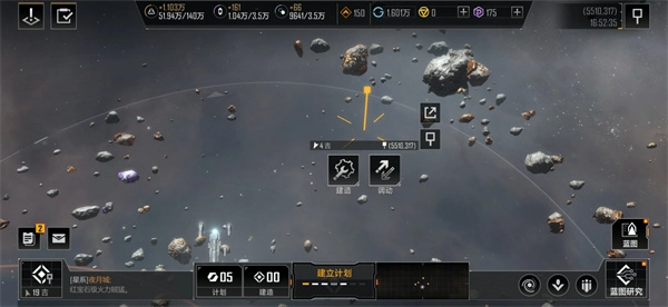 A、建造:在选定的地图范围内可派出工程舰,前往该区域启动建造;建筑落成后,其周边会生成建筑计划范围,敌对玩家的舰队无法在该范围内开展采集与联络活动。