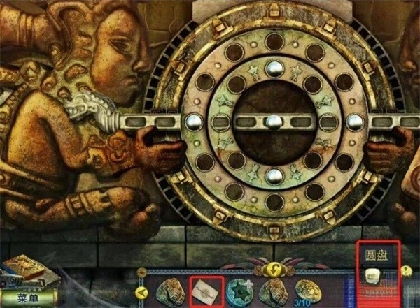 点击之后,把圆盘和图纸放进去。放好之后就会进入排列圆球的小游戏环节,这个时候可以先转动中间的圆盘。