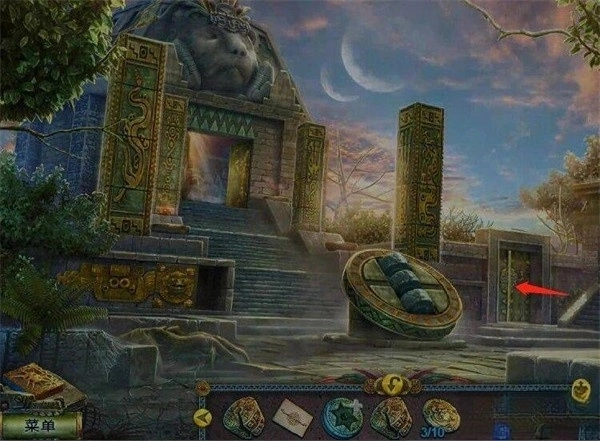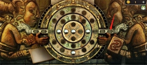 把球替换到狮子脚下,把原本在那儿的书本移开,这时候狮子身后发生了变化,一个机关装置显现了出来。