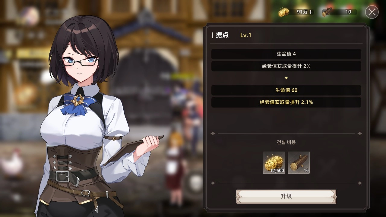 【经验获取量】与【生命值】会随着据点的升级而有所提升