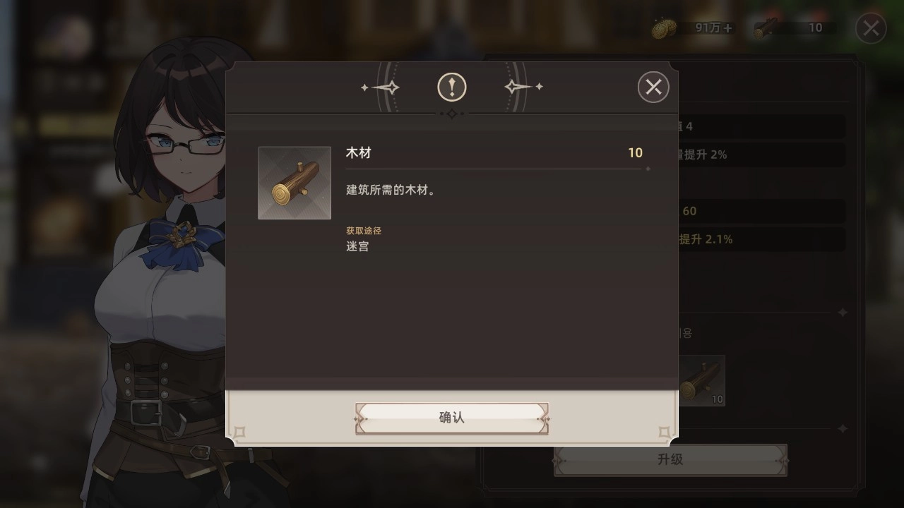 升级所需的【木材】与【石料】可在迷宫中获取。