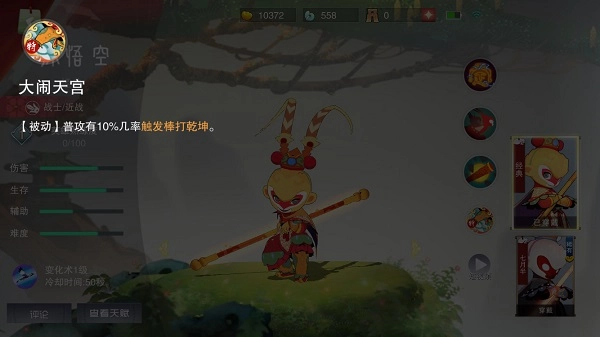 被动 大闹天宫 普攻有10%几率触发棒打乾坤。