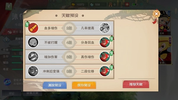 推荐天赋方案二:1222。这套天赋的思路偏向肉盾定位,核心技能选择大圣冲击。其中2-2和4-2天赋带来的分身回血效果,能显著提升孙悟空的持续作战能力,使其具备担任副坦的潜质。而第一层和第三层天赋则强化了普攻与大圣冲击的真实伤害输出能力,进入后期后,采用这种套路的孙悟空会变得愈发强势。