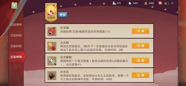 推荐配装:巨灵锤+火尖枪+白牙象戟+补天石