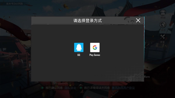 启动PUBG MOBILE国际服后,进入初始界面,第一步需要点击页面下方的两个用户协议并选择接受。