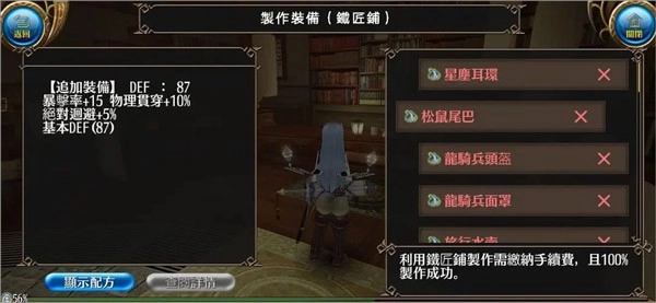 此时算下来35加40等于75,差一点也没关系,角色自身自带25点刚好凑够100暴击,之后还是用最开始雇的大剑佣兵。从这往后一路推进剧情,到了第九章,就用之前剩下的钱来置办这些材料。