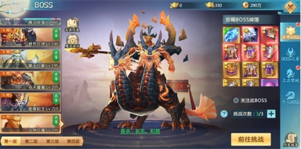 游戏里有不少BOSS,只要击败足够多的首领,就能拿到大量高级装备,还能对这些装备进行养成培养。