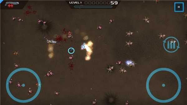 游戏采用2D俯瞰视角进行射击战斗,画面特效绚烂耀眼,生动展现了“血流成河”的激烈战场。虽然角色造型稍显小巧,不过也正因为这样,战斗场景反而显得格外开阔。敌人像潮水般源源不断的进攻,营造出极具冲击力的作战氛围。