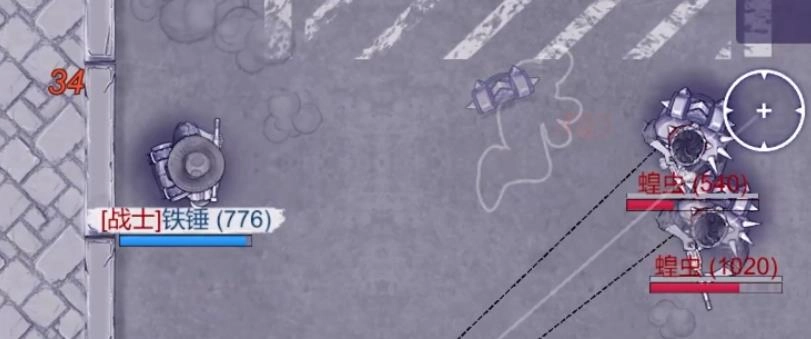 和你的人机队友注意分散站位,别扎堆吃伤害。这个螳螂有仇恨机制——你和专精弩手各从一个方向攻击一次,能让它多移动一段距离,这样可以拉扯时间持续输出。尽量减少承伤,它释放一技能时有明显前摇,要是仇恨不在你身上就趁机输出;如果仇恨锁定你,就用氮气加速(doge),能躲掉技能。它的二技能在整个生命周期里会放两次,第一次不用太担心,有铁锤扛着;第二次大概在它血量剩两千左右时释放,注意把仇恨交给弓手,之后它差不多就要被解决了。