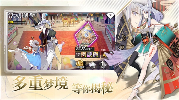 梦境场景探索,多重梦境地图,包含剧情关卡与隐藏副本,通过探索可解锁奖励及角色剧情。