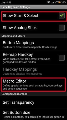 第二步:点击“Show Start&Select”并勾选该选项,接着点击下方的“Macro Editor”。