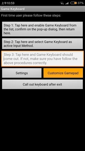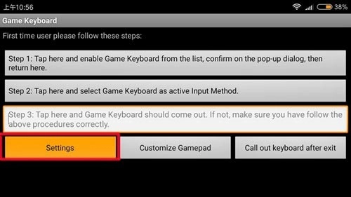 第五步:接着点击手机的返回键,回到Game Keyboard的主页面,再点击右下角的Customize Gamepad选项。
