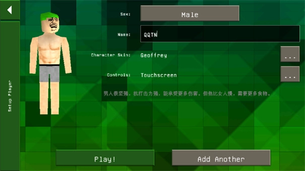 对于创建好的角色,我们能够对它的服饰、名称等进行自定义设置,确认没有问题后点击“play”按钮;要是想体验双人或者更多人的模式,就点击“add another”来创建更多角色。