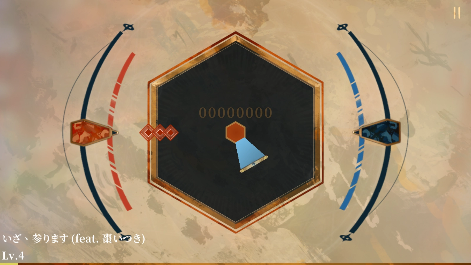 游戏采用六边形轮盘搭配弧形轨道的设计,取代了传统音乐游戏里下落式轨道点击的玩法,让游戏的趣味性得到了进一步提升。