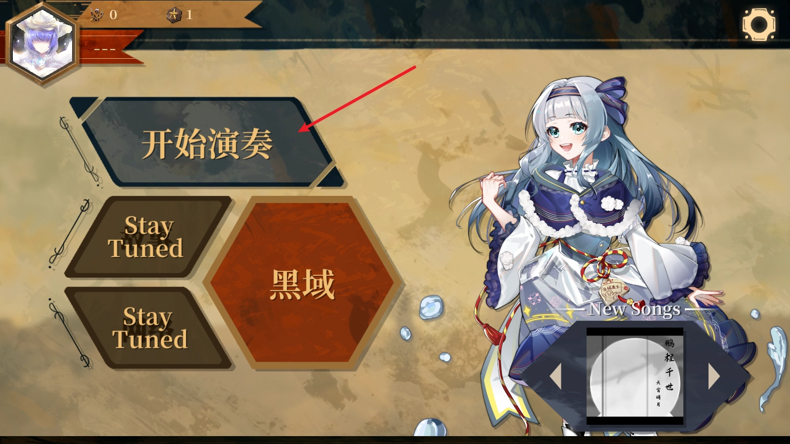 游戏里解锁歌曲有两种途径,第一种是点击主界面上的这个黑域。