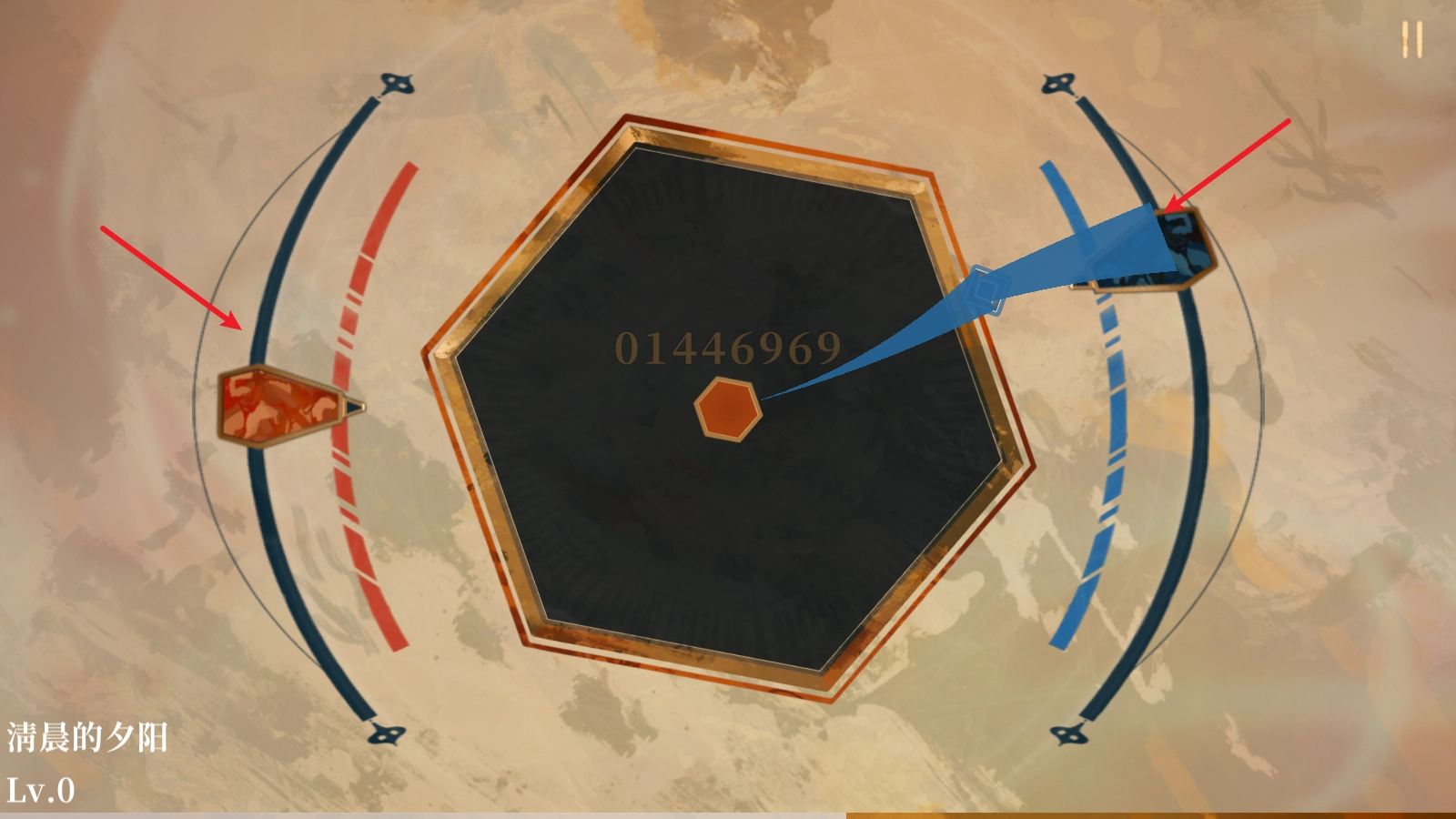 正式进入游戏后,让我们先熟悉一下玩法。最基础的操作是点击音符,当音符移动到六边形边缘附近时点击就可以了。