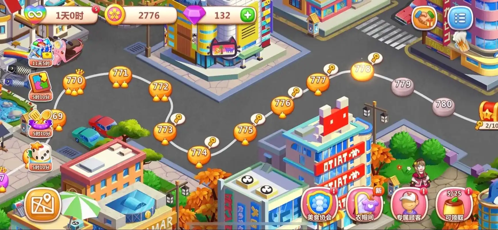 美食小当家支持角色装扮的更换,不过在闯关过程中玩家无法看到角色的装扮。游戏里涵盖了丰富多样的美食种类,每种美食都有其独特的制作方法,并且所有菜品都能进行升级。对菜品进行升级能够获取更高的收益,但升级菜品也需要消耗资金。