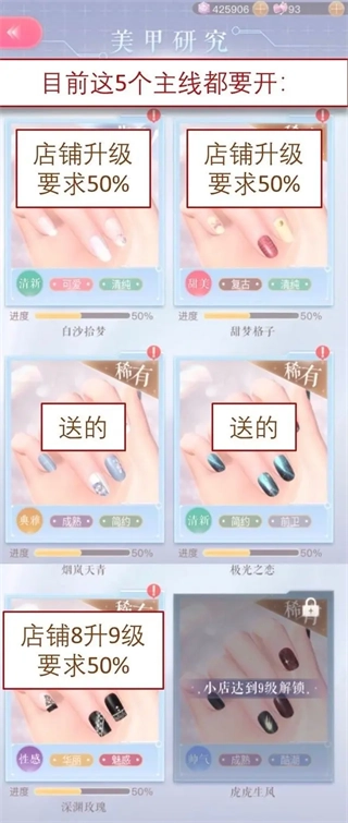 【美甲研究更换主线啦】看图片哦~四个主线都得解锁,解锁方式是免费或者满足升级要求