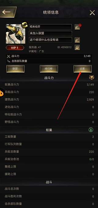 进入游戏后,点击主界面上方的“战斗力”按钮,即可进入统领信息界面。