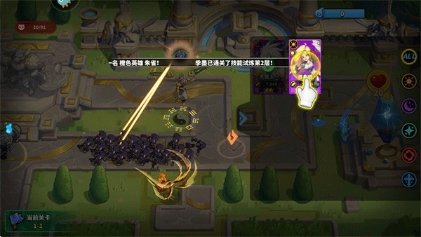 一大群敌人即将袭来,已放置的英雄会自动发起攻击,玩家只需运用策略,合理安排英雄的站位,并规划好攻击方式与时机。