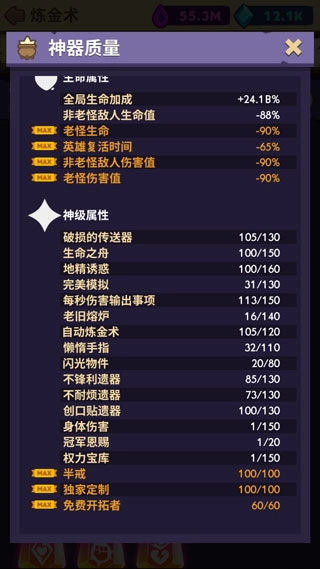 这三项在中后期提升方面都很适配,每一项都有着重要意义。传送器能帮你跳过非史诗级老怪的关卡,让你的隐遁之旅轻松许多。自动炼金术达到100级后,会切换为停用戒指后点击0秒即可启动效果,是手动刷级玩家必备的经济提升利器!地精诱惑就不用过多说明了,经济提升的效果用过的人都清楚。