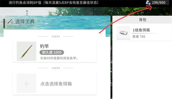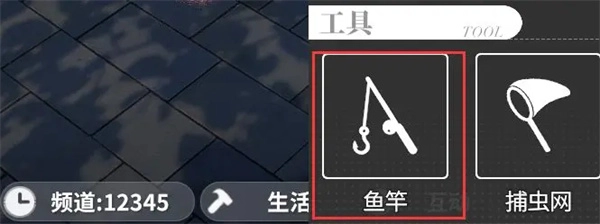 这个鱼竿会显示在屏幕下方的互动选项中,玩家只需点击鱼竿就能完成装备,之后找到一处有水的区域,简单挥动鱼竿,再挑选合适的鱼饵箱,就能顺利进行钓鱼操作了。