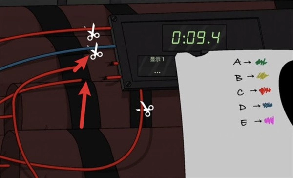 把前面三根线都剪断之后,倒计时就停了,这样就成功拆除炸弹了。