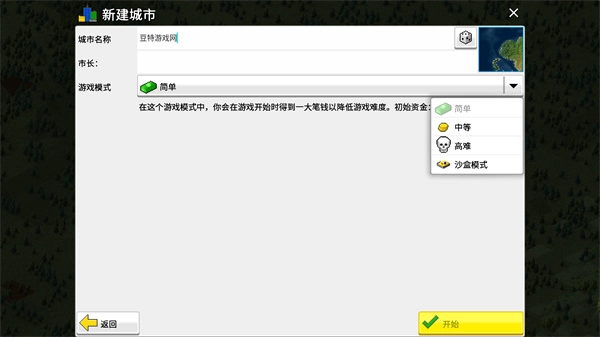 请选择游戏难度,可选难度包括简单、中等、高难以及沙盒模式。