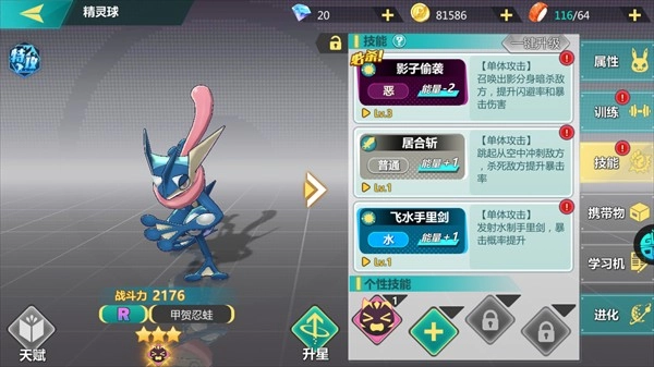 升级小贴士:要是想让升级速度更快,电属性精灵的稀有技能自带经验掉落加成效果,这个加成分为两个部分——一是技能等级加成,技能等级越高,经验掉落的提升就越明显;二是全身强化加成,全身强化程度越高,这部分加成也会越多,但它的上限不会超过技能本身的等级。因此,在进行吞噬操作时,建议优先给电属性精灵吞噬资源,这样能更快提升它的技能等级哦。