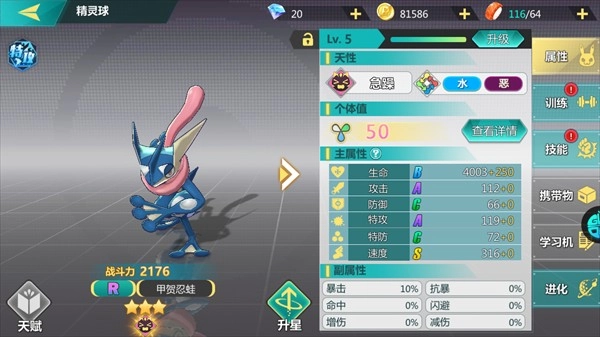 精灵:不少小伙伴在合体得到稀有精灵,或者通过声望培育出稀有精灵后,就直接把它们当作主宠来培养,其实这并非最佳选择。另外还有一些带星标的精灵,它们能提供更高的属性加成,所以建议先把稀有技能传承给这些带星标的精灵,再重点培养它们会更好。