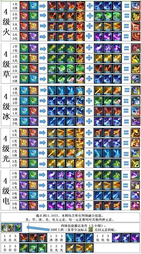 想解锁四级融合技能,要求可不算低。得让三条同元素且带有皇冠标识的蛇同时上场,再完成对应的元素组合,这样才能触发它的四级融合技能。要特别注意,要是没让三条带皇冠标识的同元素蛇一起上阵,那就只能激活三级融合技能。四级融合技能的力量更猛,在战斗里能起到关键作用。所以呀,只有仔细规划,把蛇灵搭配得当,才能达到激活四级融合技能的要求呢~