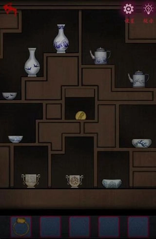 在场景里找到道具摆放台,按照攻略图示的位置,把“花瓶”“玉器”“瓷器”摆放好,摆放正确就能得到“蝉摆件”。