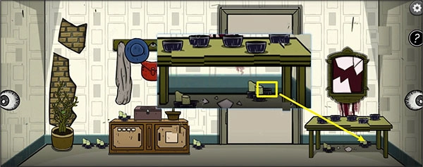 用刚才从时钟场景获取的【钥匙】,打开厨房场景左侧柜子左下方的小格子,取出【镜片】。与此同时,在该场景右侧管道后方找到【齿轮】,并在管道表面取下【把手】。