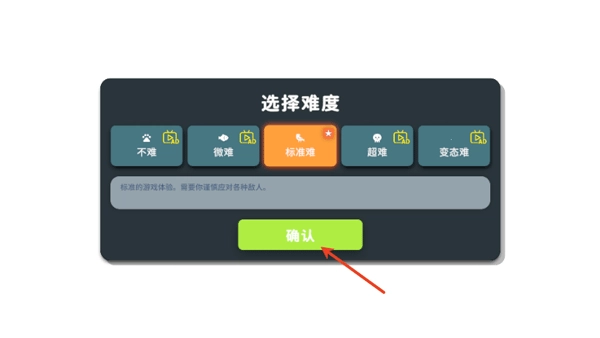 完成上述操作后返回主页,点击“新游戏”进入游戏界面,选择游戏难度为“标准难度”并点击确认。