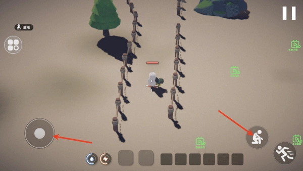 正式进入游戏后,左侧轮盘用于操控方向,右侧按钮则包含蹲下、疾跑等功能。