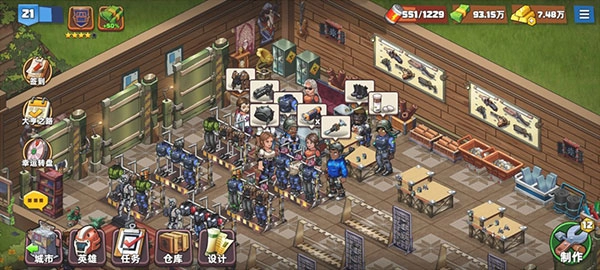 城市:可限制员工与英雄的等级上限,升级需消耗金钱。