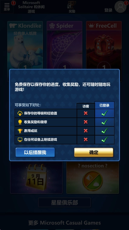 登录Microsoft帐户后,您可以使用成就和排行榜功能,同时还能将游戏进度保存在云端。