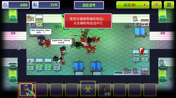 当遭遇人类抵抗时,点击辅助物品栏里的手榴弹之类的道具,选中后使用就能快速清除障碍,加快感染进度。