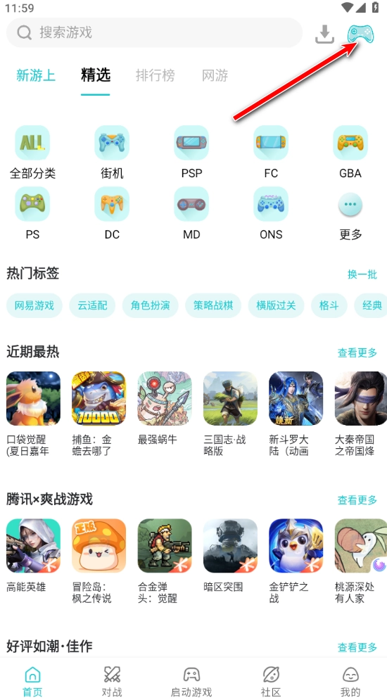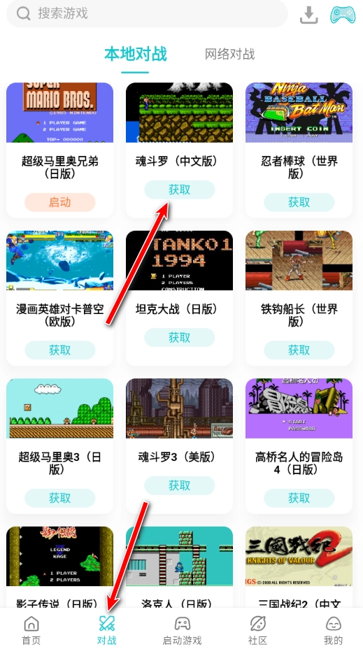 打开软件,进入"对战"页面,选择所需联机的游戏。