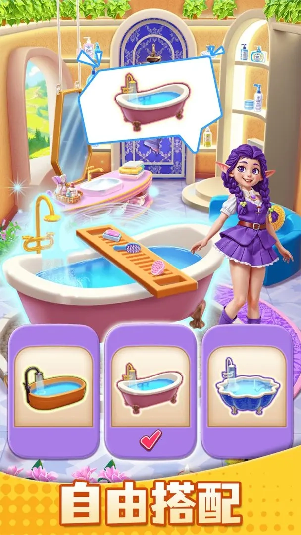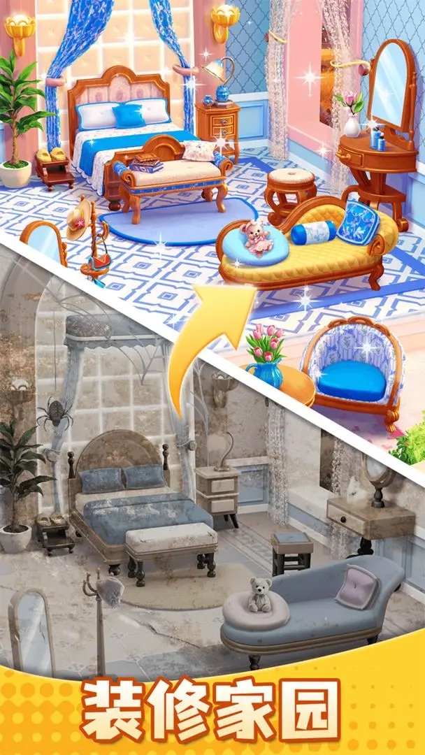 模拟经营的乐趣在于:玩家能借助消除玩法获取的资源,参与城堡的重建与装修工作,进而逐步解锁新的区域和功能。