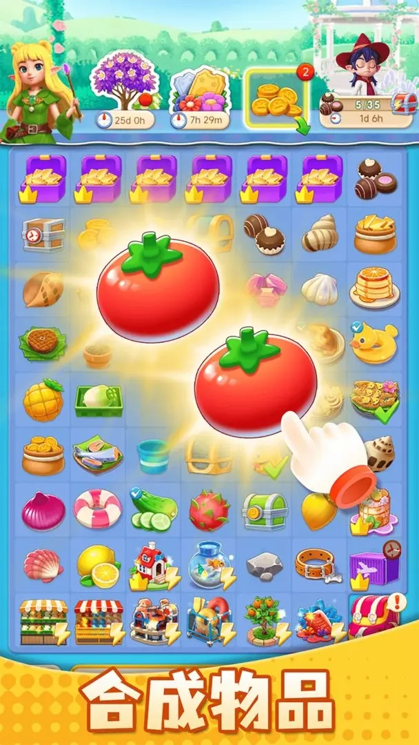 美食合成艺术:玩家通过消除方块合成各类美食,满足神秘顾客的需求,以此获取金币与经验值。