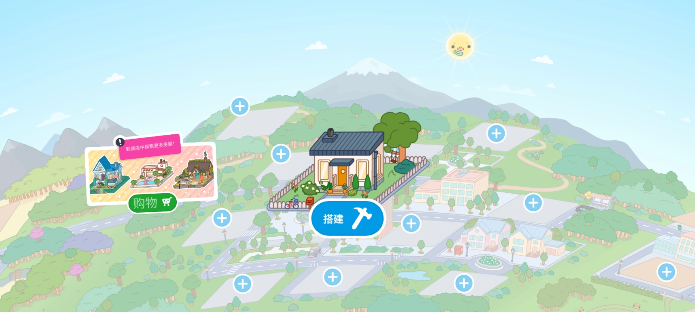 点击加号挑选一处心仪之地,再点击你打算搭建的房屋样式;若想更换房型,也能去商店选购其他款式。待搭建完成后,点击房屋即可进入内部着手装修。