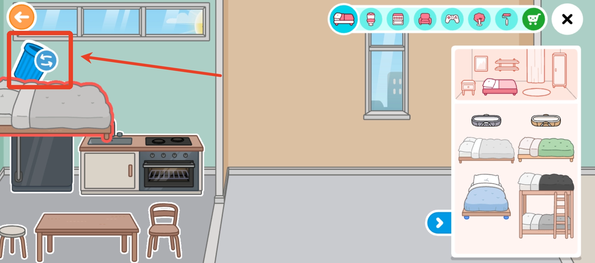 家具选得不合适也没关系,把它拖到左上角的垃圾桶那里就能删除了。