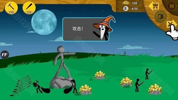 这样我们就能迅速获取足量的矿石,以召唤更多具备攻击性的火柴人。