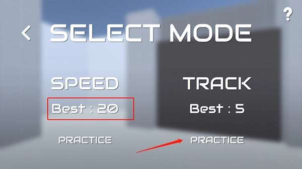 这里是模式选择区域,左侧的“speed”代表速度,下方显示的是最佳成绩;右侧的“track”意为跟踪,其下方标注的是跟踪的数量。点击最底部的“practice”按钮即可开始游戏。